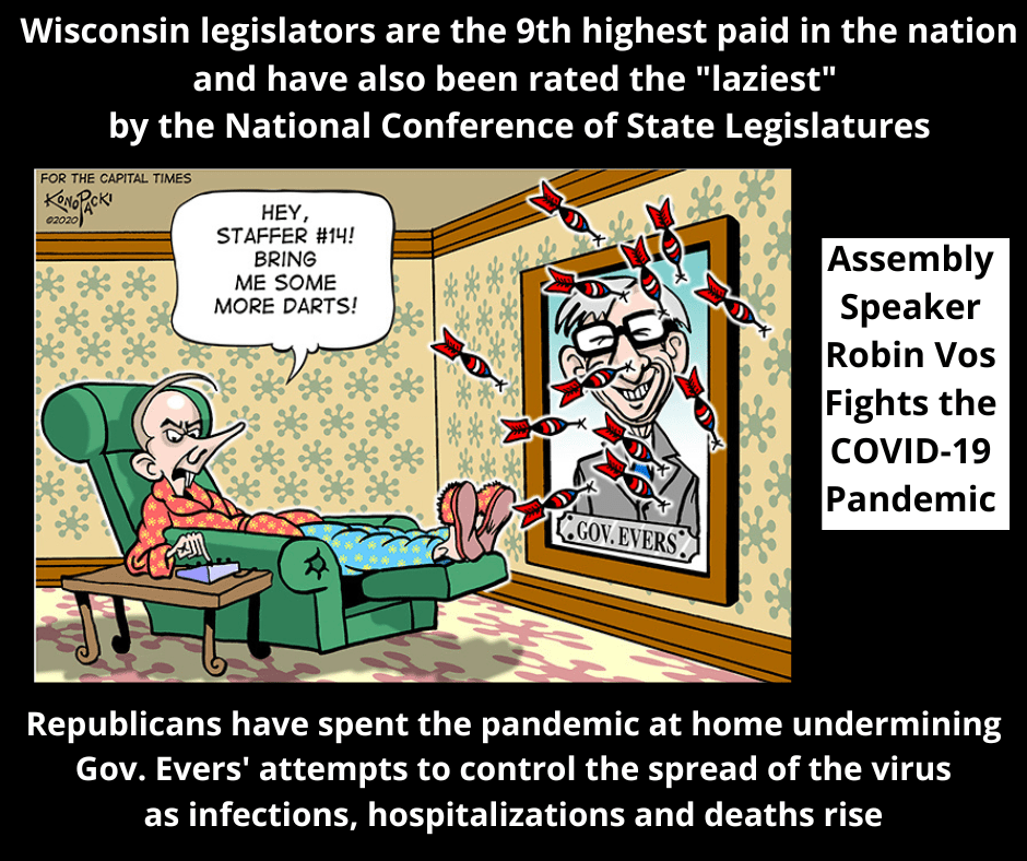 While still collecting their full salary and benefits for sitting home and undermining attempts by Gov. Evers to control the spread of the virus.