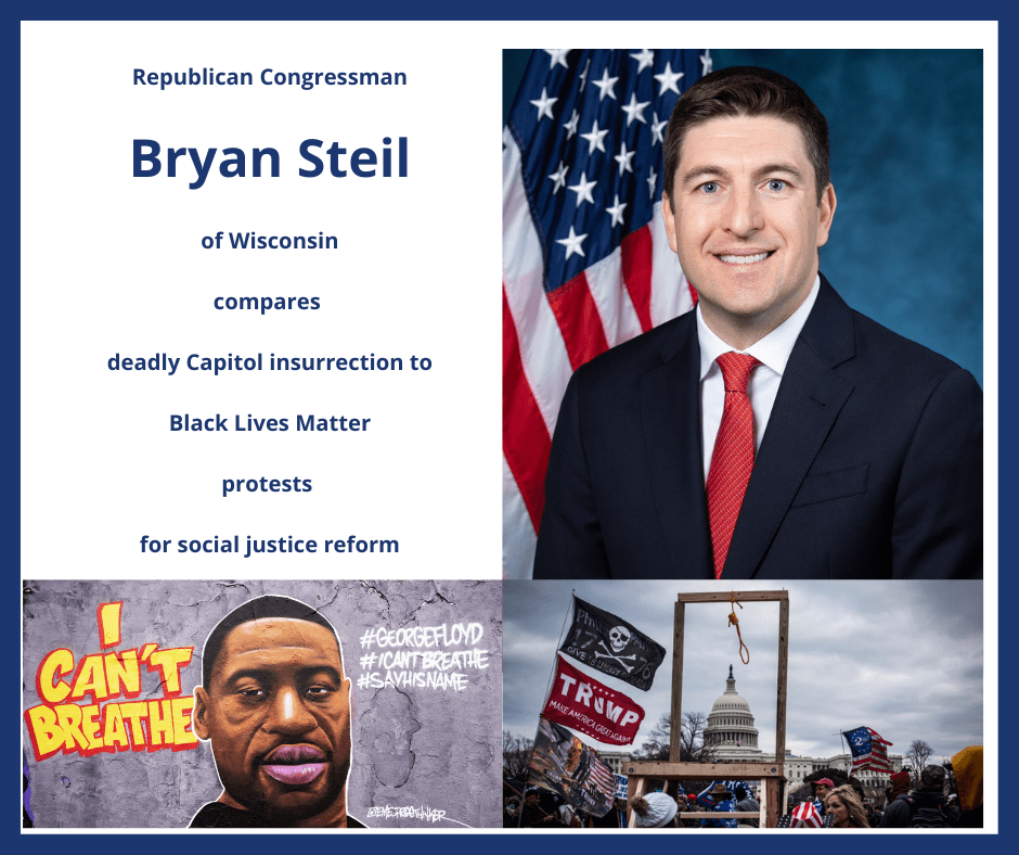 In his press release about the impending impeachment of Donald Trump, Congressman Bryan Steil compared the deadly and treasonous insurrection at our nation’s Capitol building this week with Black Lives Matter marches calling for police reform in the wake of deadly police killings and shootings of Black Americans this summer.